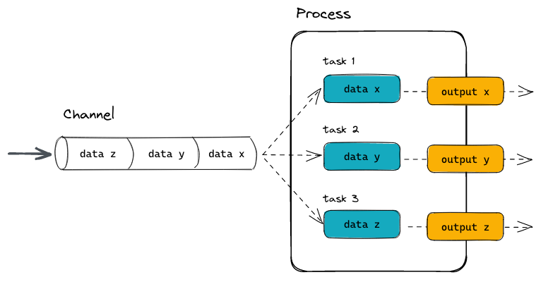 Any process can define one or more channels as an input and output. The interaction between these processes, and ultimately the workflow execution flow itself, is implicitly defined by these input and output declarations.