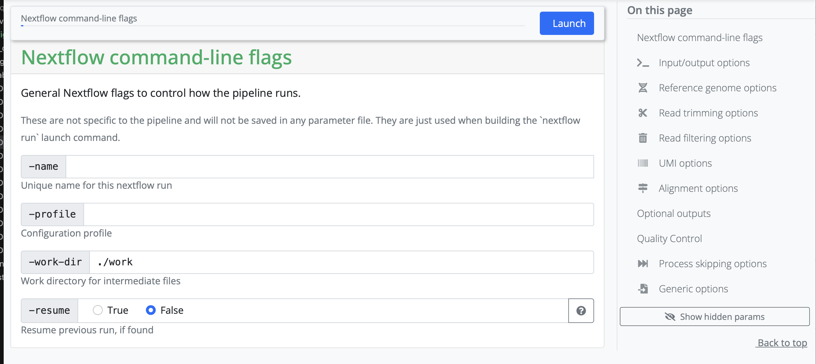 Other than the options above, you don’t need to change anything to run the pipeline. However, for your project you might want to change some of the default parameters. For this evercise we will keep the rest as is.